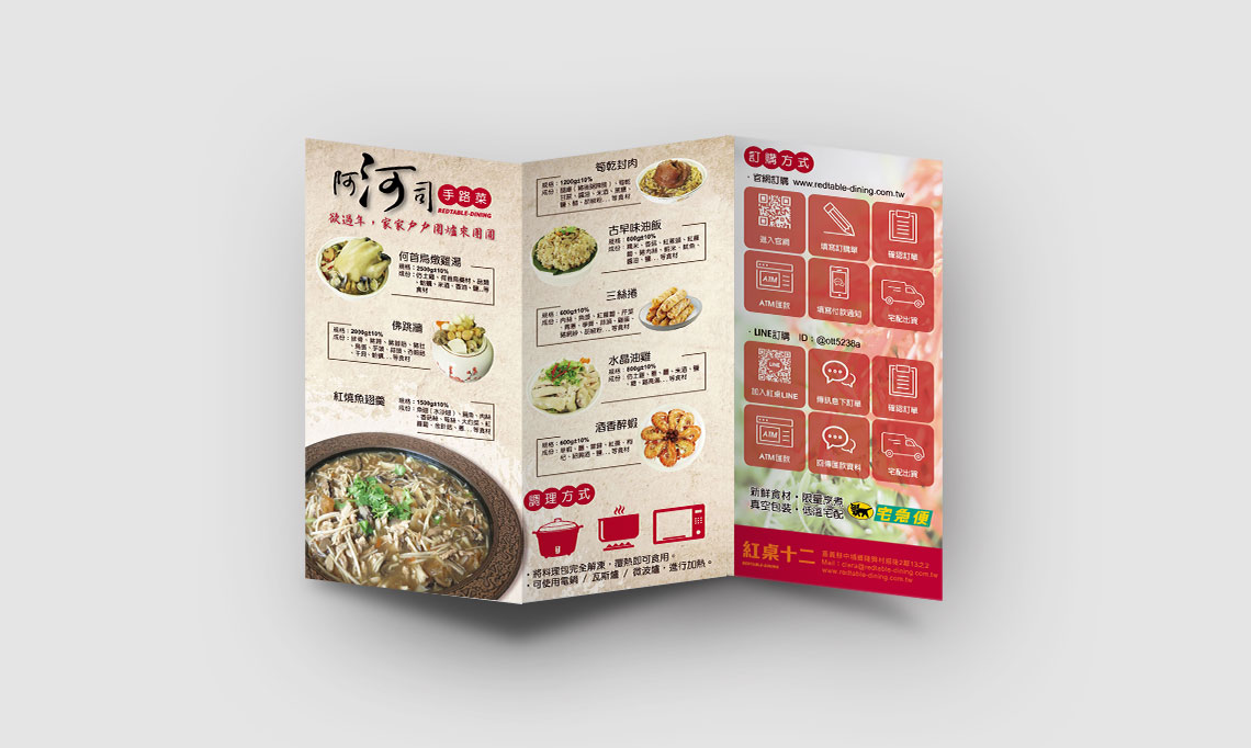 早期傳統宴席文化(天子宴、婚慶宴、祝壽宴、喬遷宴、祭祀宴、孔府宴...)共可歸納出十二類,加上一年有十二個月,二十四個節氣,隨時間轉動,每個節氣會有不同當季特色食材,衍生不同美食,而紅桌就是想把這樣的新鮮分享給大家,因此命名「紅桌十二」做為品牌名。